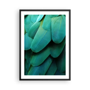 Plagát v čiernom ráme - Detailný záber na zelené perie exotického vtáka - 50x70cm - Presnosť papagájovej povahy - Moderná nástenná dekorácia do obývacej izby a spálne ARTTOR