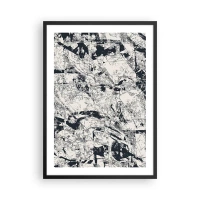 Plagát v čiernom ráme - Abstraktná čiernobiela textúrovaná kompozícia - 50x70cm - Prelínanie protikladov - Moderná nástenná dekorácia do obývacej izby a spálne ARTTOR