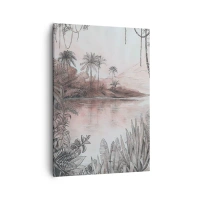 Plagát v čiernom ráme - Exotická krajina pri vode - 50x70cm - Denník cestovateľa z 19. storočia - Moderná nástenná dekorácia do obývacej izby a spálne ARTTOR