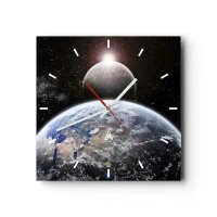 Nástenné hodiny - Vesmírna krajina - východ slnka - 40x40 cm