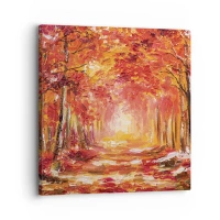 Obraz na skle - Jesenná krajina so stromami v teplých farbách - 70x50cm - Medený les - Moderná nástenná dekorácia do obývacej izby a spálne ARTTOR