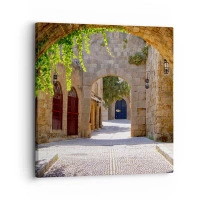 Obraz na plátne - Kamenné oblúky a dláždené ulice v stredovekom štýle - 70x50cm - Čoskoro sa objaví družina - Moderná nástenná dekorácia do obývacej izby a spálne ARTTOR
