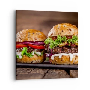 Obraz na plátne - Chutné burgre so zeleninou a omáčkou - 70x50cm - American dream - Moderná nástenná dekorácia do obývacej izby a spálne ARTTOR