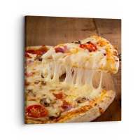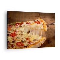 Obraz na plátne - Pizza s vláknitým syrom - 70x50cm - Veľdielo talianskeho umenia - Moderná nástenná dekorácia do obývacej izby a spálne ARTTOR