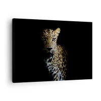 Obraz na plátne - Leopard na tmavom pozadí s intenzívnym pohľadom - 70x50cm - Temná krása - Moderná nástenná dekorácia do obývacej izby a spálne ARTTOR