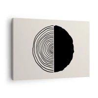 Obraz na plátne - Abstraktný čiernobiely motív inšpirovaný prierezom dreva s geometrickým členením. - 70x50cm - Pol na pol - Moderná nástenná dekorácia do obývacej izby a spálne ARTTOR