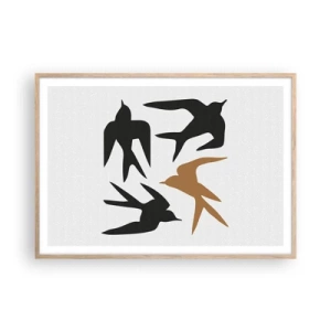 Plagát v ráme zo svetlého duba - Lastovičky - 100x70 cm