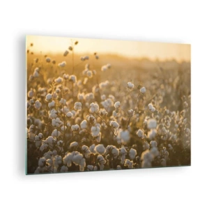 Obraz na skle - Bavlníkové pole pri západe slnka - 70x50cm - Chlpaté pole - Moderná nástenná dekorácia do obývacej izby a spálne ARTTOR